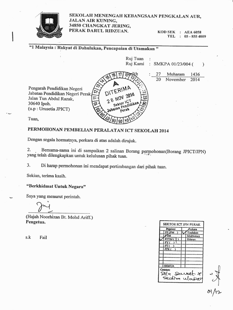Permohonan pembelian peralatan ict sekolah 2014 pdf document. 2 kenalpasti geran internal umrgbkpppp external kptmostiindustri. Surat tersebut akan ditujukan kepada donatur.